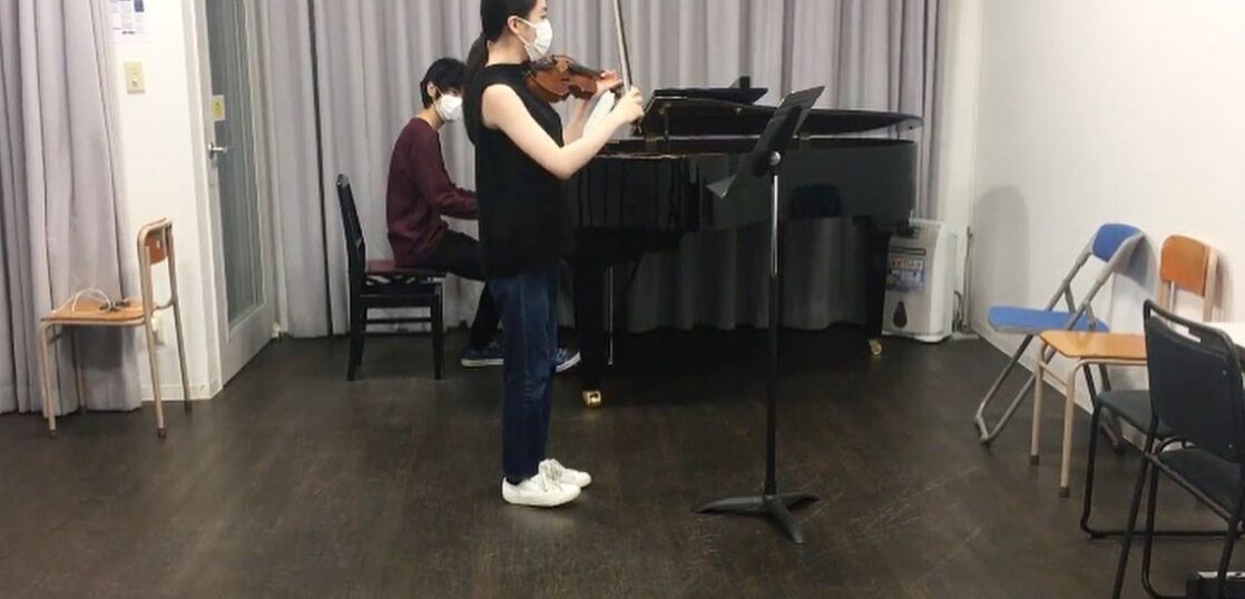 大学の室内楽試験のためにピアノ創作専攻の友人と練習をしています。