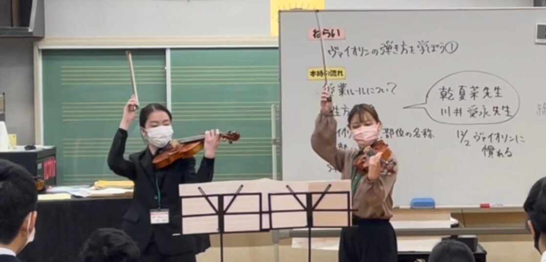 12月に東村山第七中学校の音楽の授業でヴァイオリンを学ぶ授業があり、講師としてお手伝いをしました。